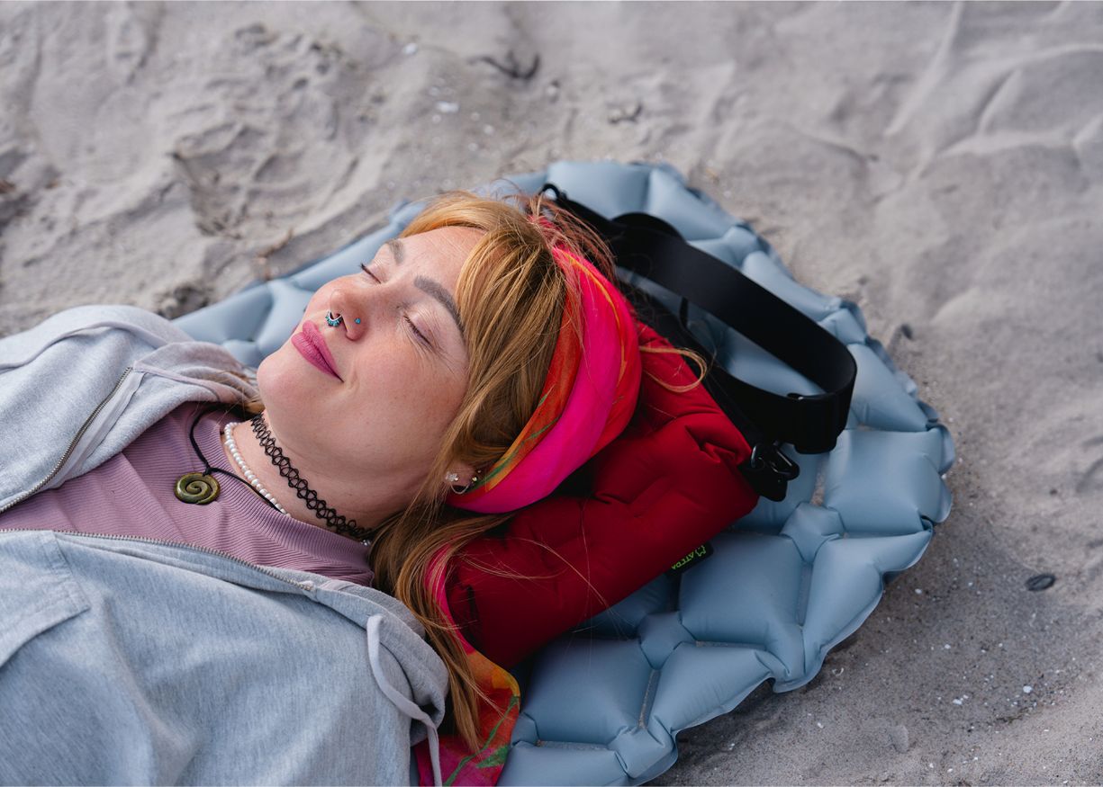 Multifunktionskissen: Das Produkt kann als Kopfstütze dienen und sicher und verrutschsicher auf einer Matte befestigt werden.