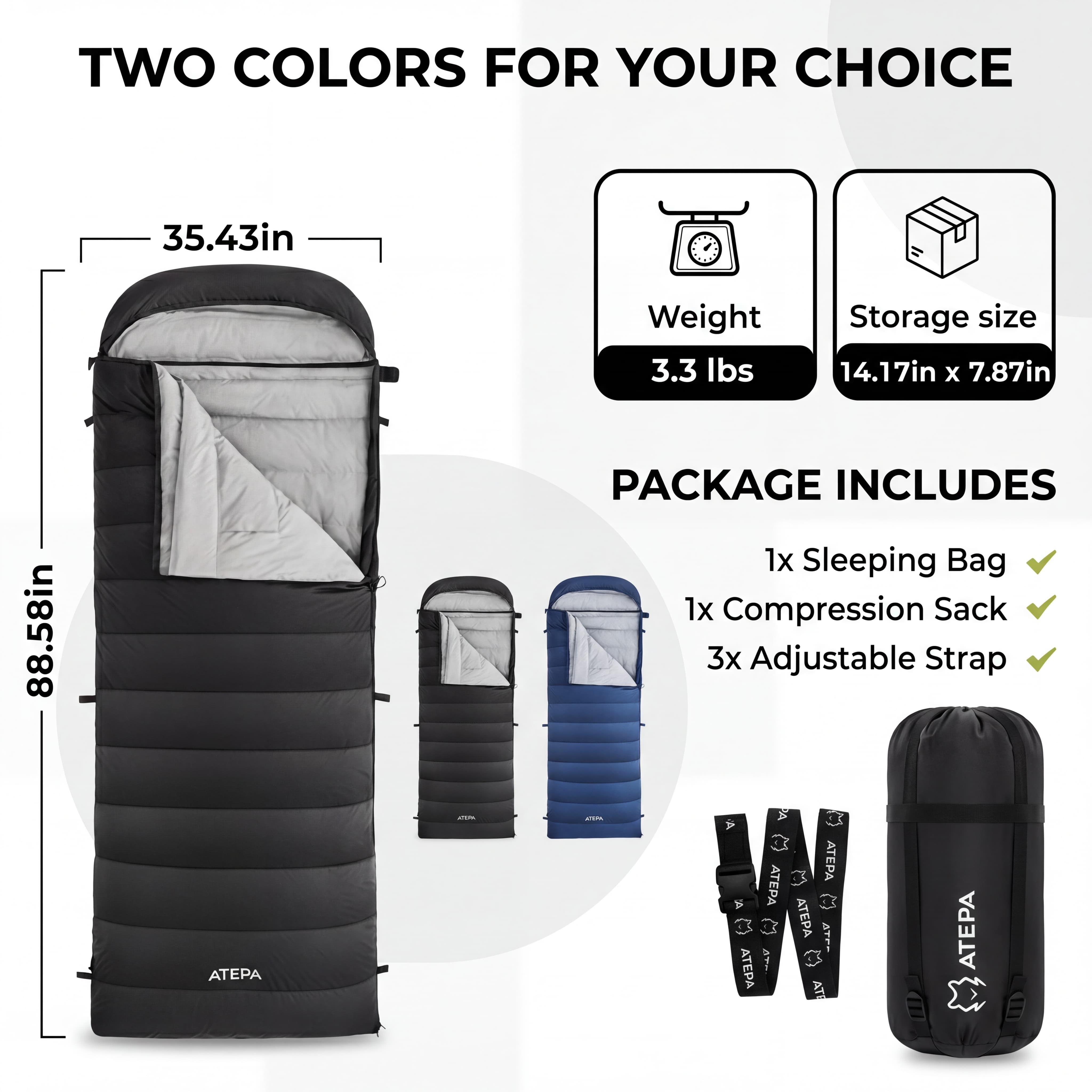 - Geräumiger Komfort: Der Schlafsack verfügt über ein erweitertes Design (225 x 90 cm) und bietet ausreichend Platz für bequeme Bewegungen, einschließlich Drehen oder Positionswechsel während des Schlafs.