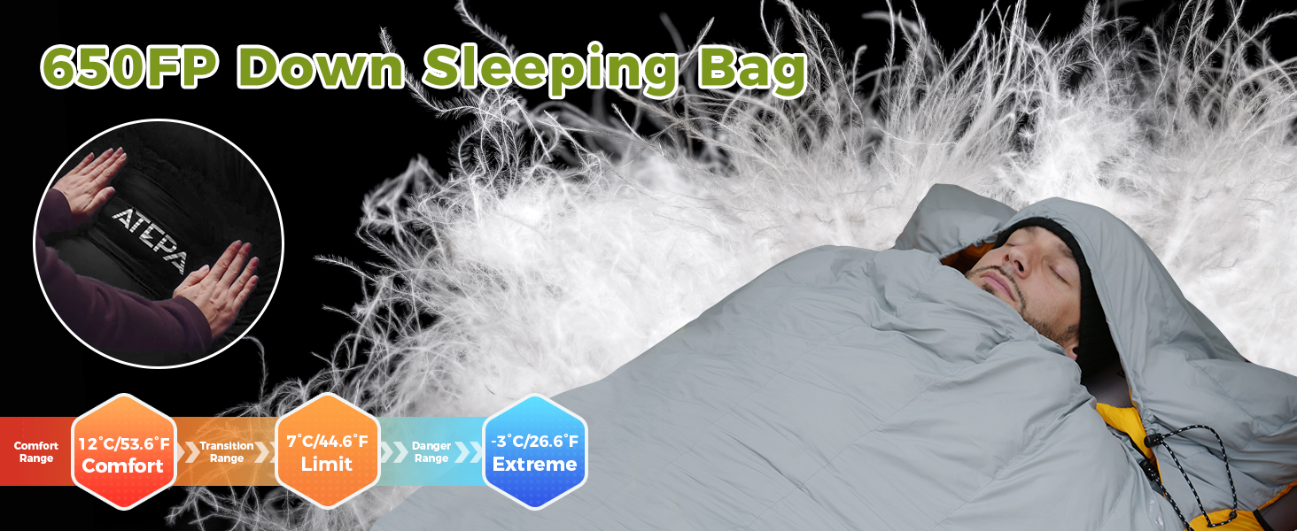 2. Chaleur : rembourrage en duvet et coton 300 g, respirant et chaud, moelleux et léger, naturel et respectueux de l'environnement, assurant un sommeil confortable à l'extérieur