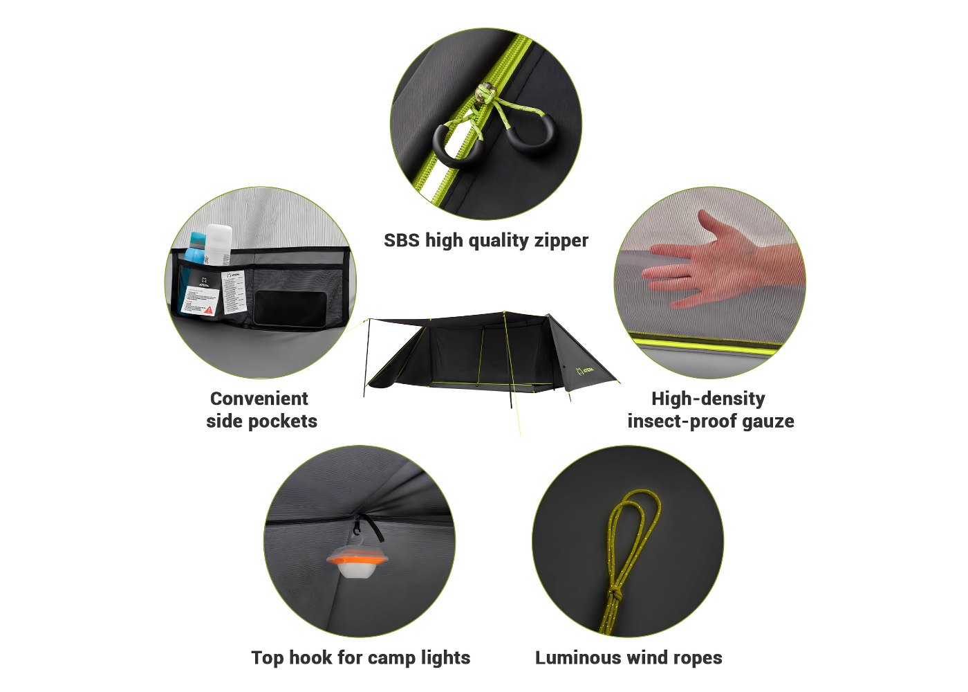 - Storage Pockets and Lantern Hook: Keep essentials organized and your space illuminate