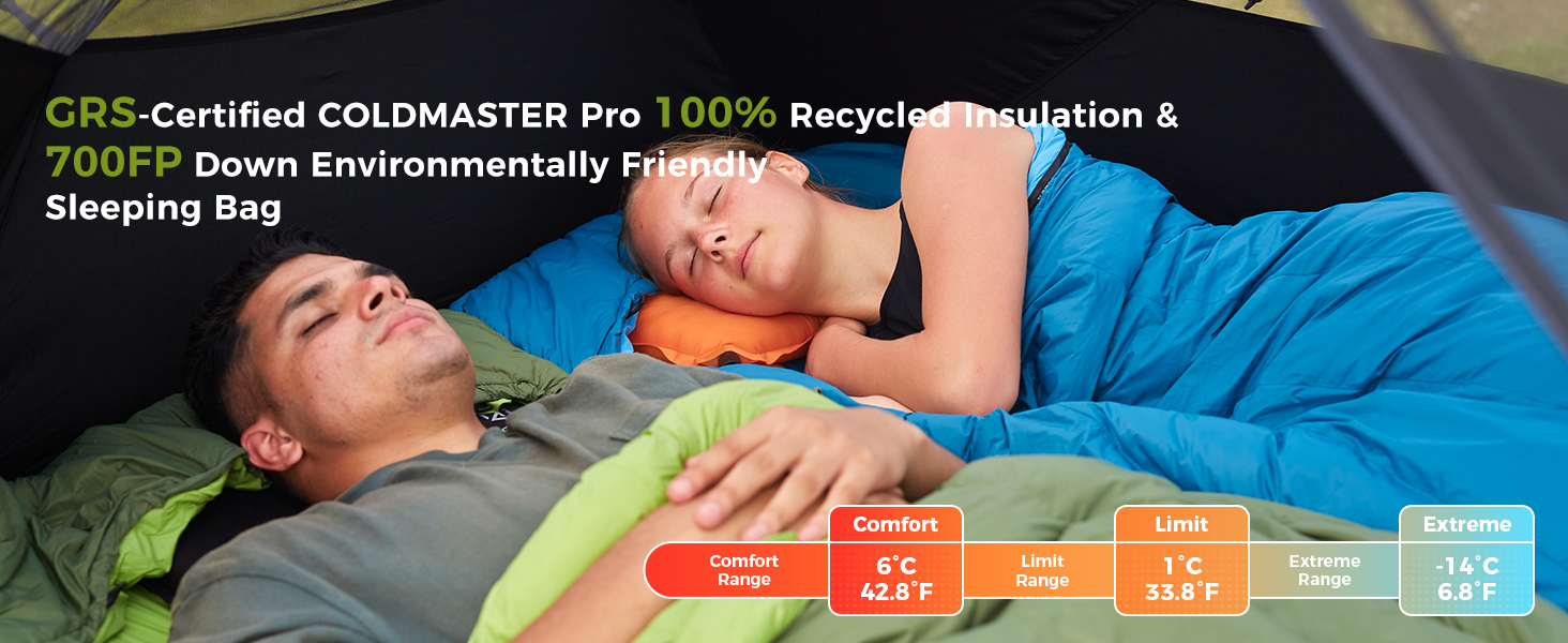 Compared nature down, Coldmaster down offers even warmth with no cold spots, (7% difference only) but perform better in wet environment (moisture-proof) with superior insulation.
