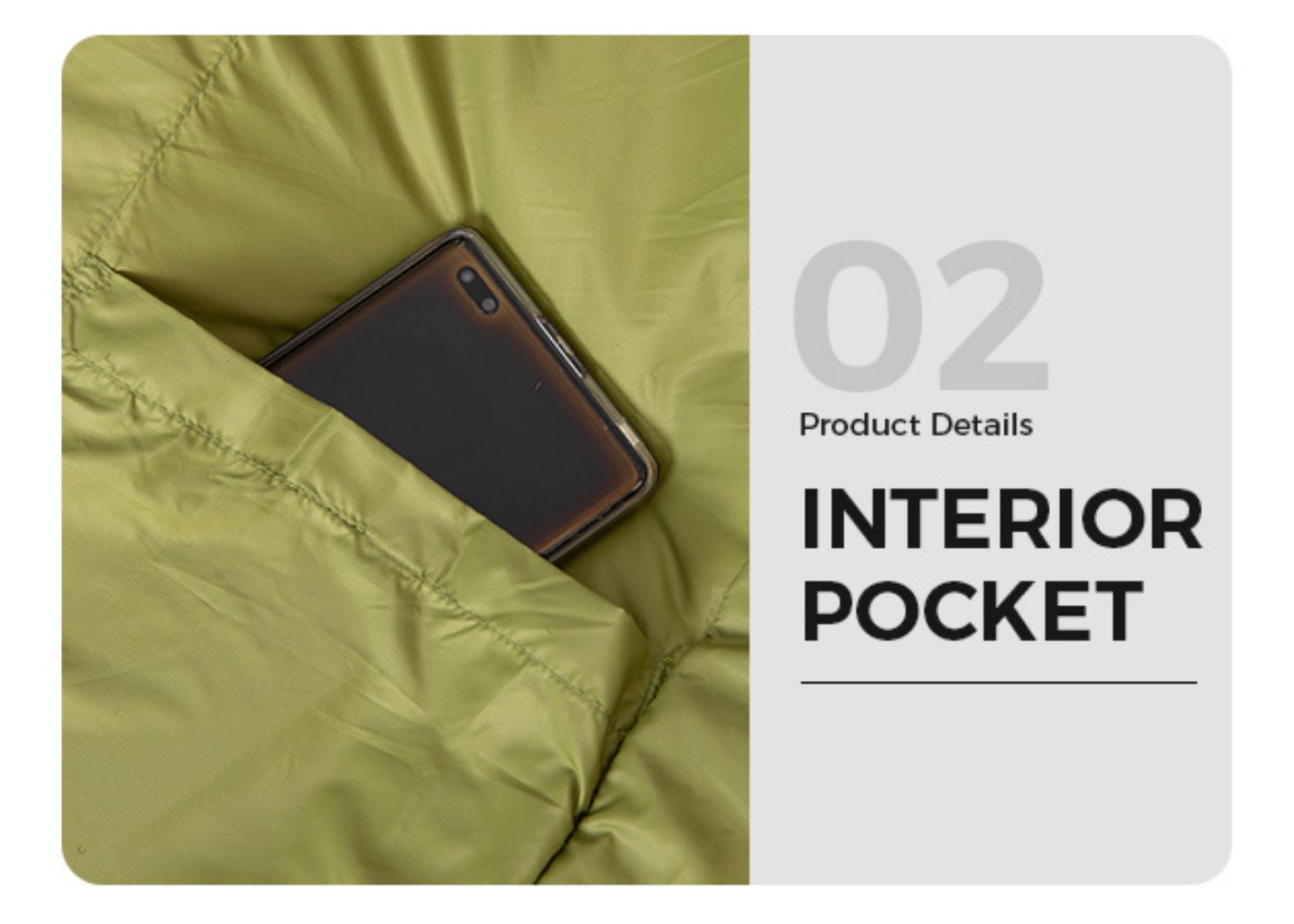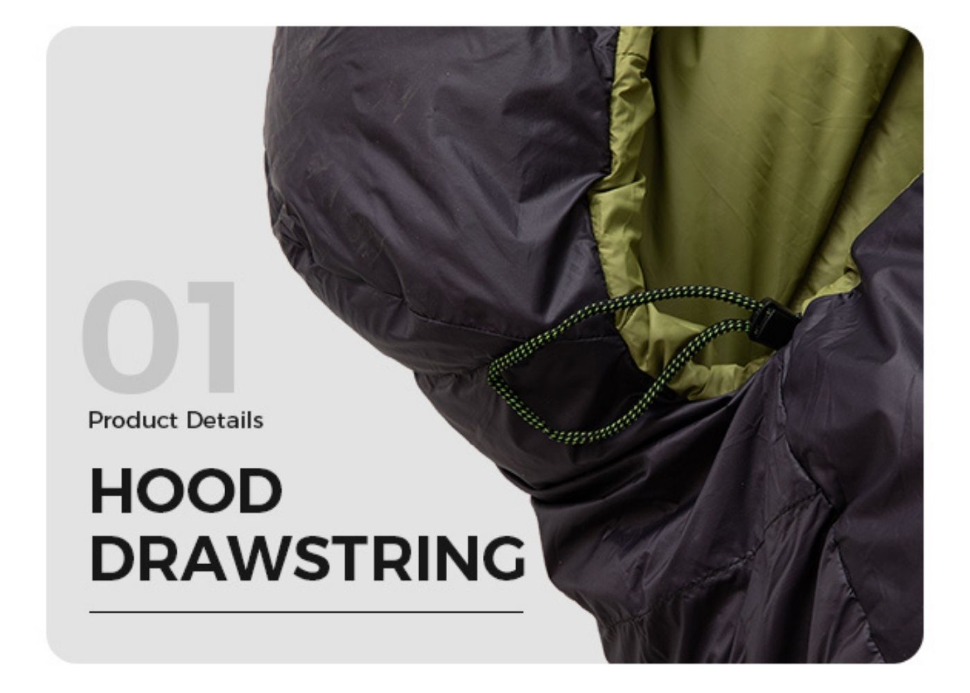 Keep your head cozy with our adjustable 3D hood design, tailored to provide full insulation without sacrificing breathability. Whether you’re on a chilly backpacking sleeping bag adventure or just need an all-season camping sleeping bag, this feature ensures you stay warm and comfortable in any weather.