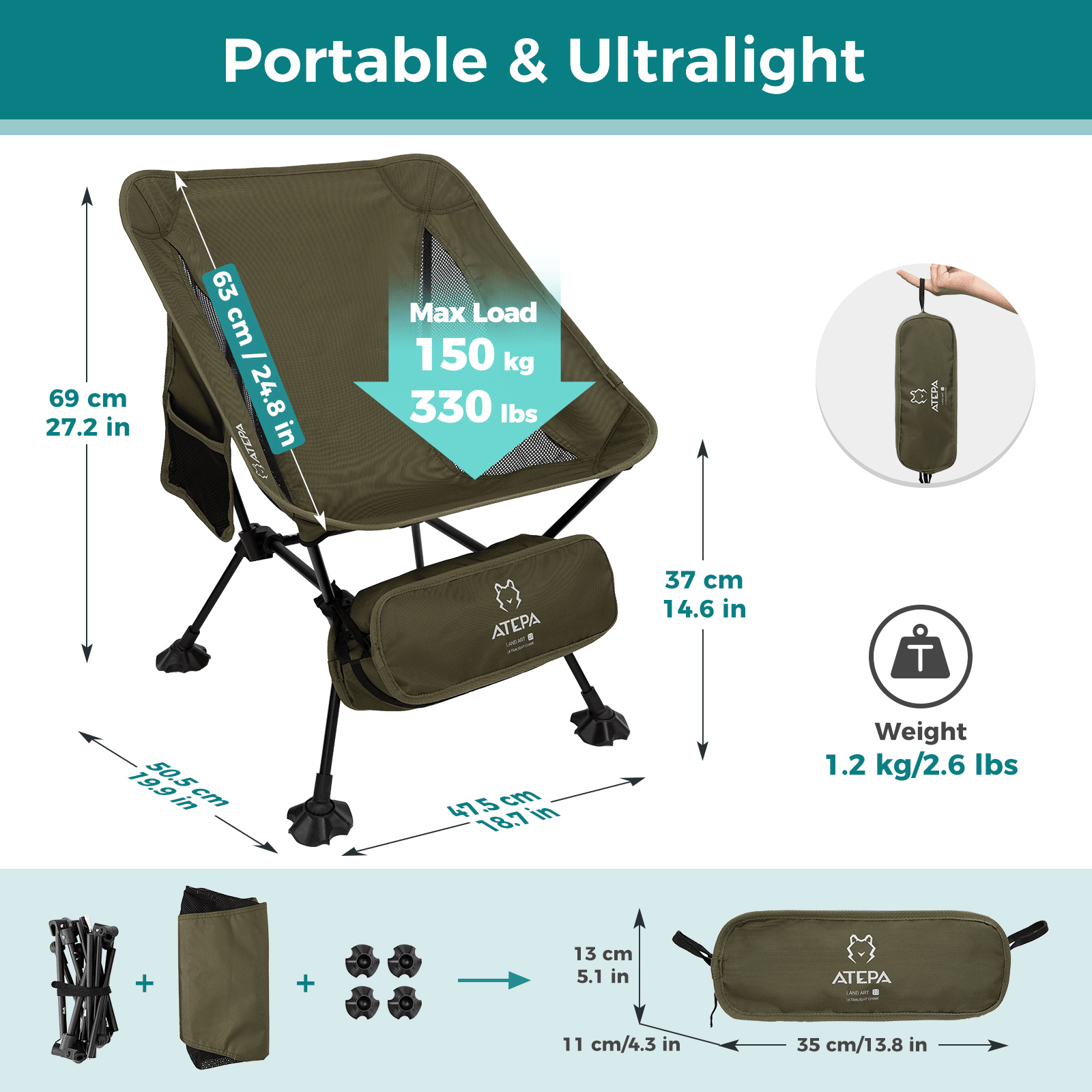 ATEPA Foldable Camping Chair Ultralight Square Tall Chair