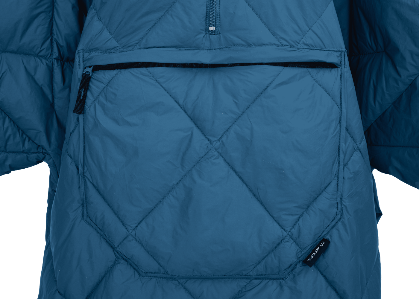 Filled with 350g 650FP of renewable cotton, the poncho is a cocoon of breathable warmth. Soft, fluffy, and eco-friendly, it guarantees a blissful night's sleep under the stars. 0°C/32°F rated and perfect for 3-season outdoor activities.
